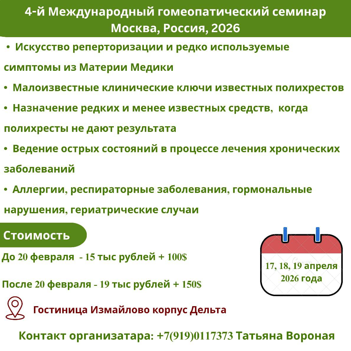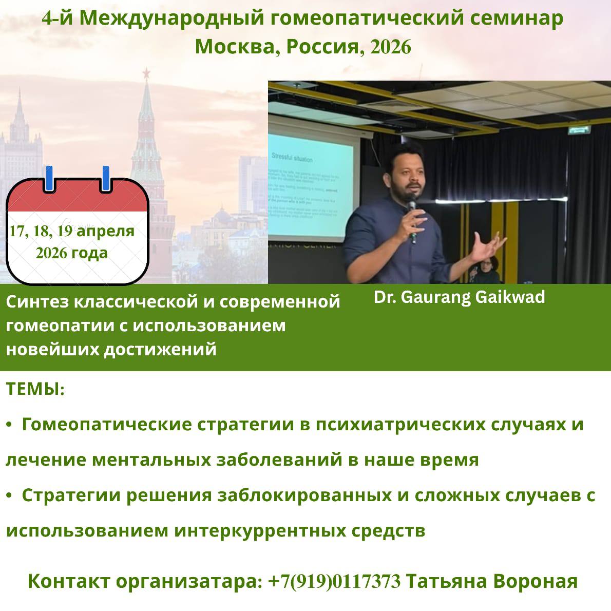 17-19 апреля 2026 года в г. Москва состоится 4-й Международный гомеопатический семинар д-ра Горанга Гайквада ( Мумбаи, Индия).